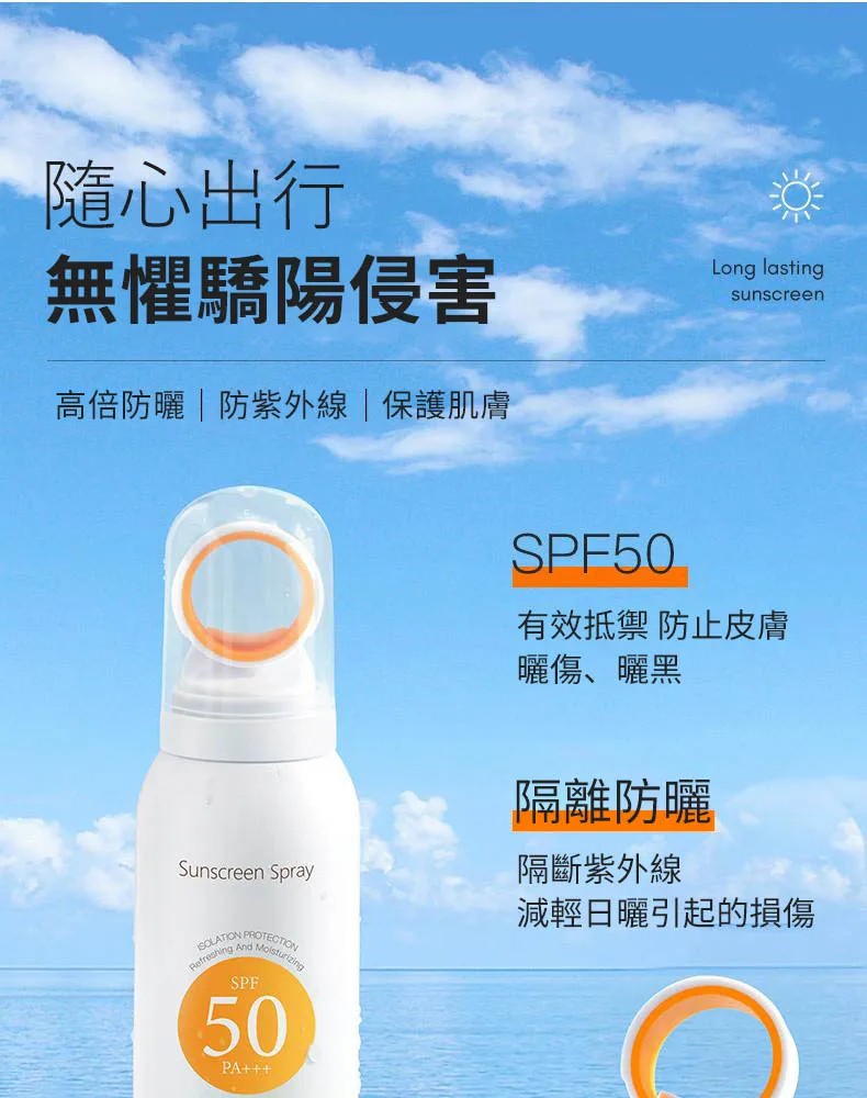 7分鐘前安歌依光圈防曬噴霧,細密噴頭設計 噴頭360°可旋轉自然膚惑,隔離防曬一瓶搞定 - 限時搶購「安歌依光圈防曬噴霧」2入78%用戶的選擇!NT$998【限時免運】